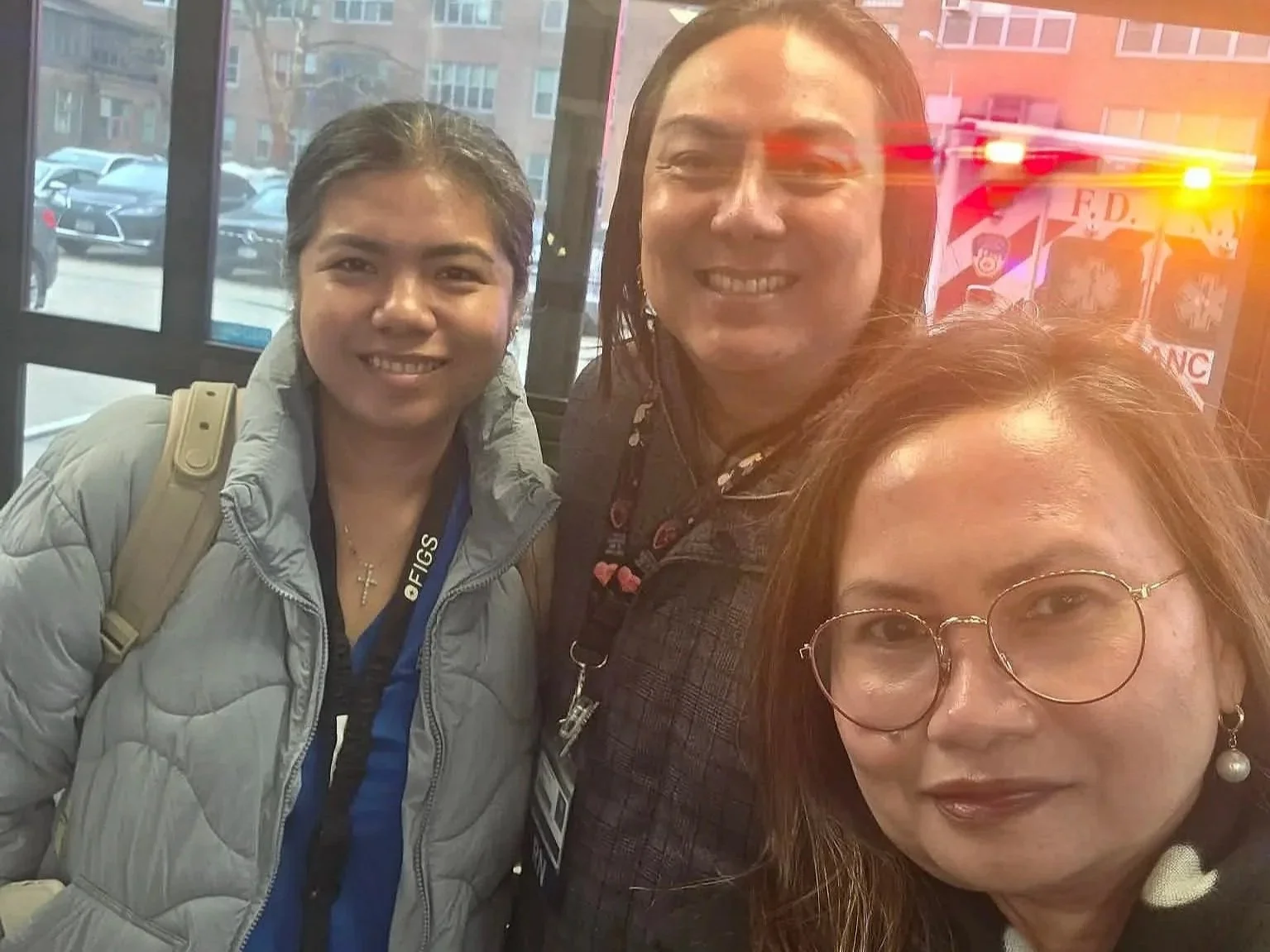 Charge nurse Rodel Emboscado (middle) with Filipino colleagues at the health facility in New York City where they work. Emboscado studied BS Nursing in the Philippines and got his license to practice nursing in the U.S. at the height of the COVID-19 pandemic.